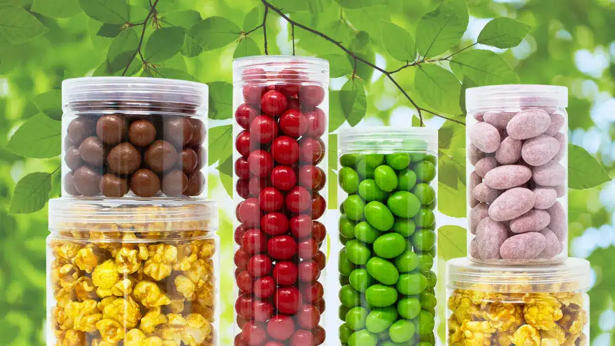 Our disposable mason jars and candy tubes come in an array of sizes, ranging from sizes as small as 8.3 oz jar to our largest 29.6 oz mason jar.